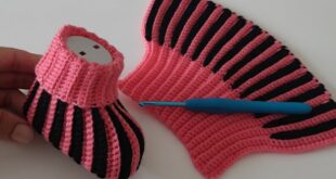 Perfect! 🧶✨ This is a striped crochet slipper bootie made from a flat panel that’s later folded and sewn together. Super easy for beginners because you don’t need to crochet in the round — just work back and forth, then shape! Let’s go step by step 👇 🧶 Materials Yarn: …
